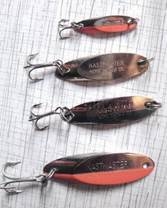 Да, еще вертушки и колебалки могут иметь разные украшения. Чаще всего это красные нитки на тройниках и разные блестки на теле приманки. Все это привлекает хищника. Это, пожалуй, самая древняя приманка, на которую еще ловили в те времена, когда и спиннингов не было. По форме колебалки бывают «пузатыми» и короткими, и узкими, но длинными. В основном они имеют серебристый и бронзовый оттенок. Делают их из нержавеющей стали, из бронзы и латуни.
