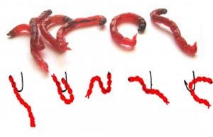 Самой универсальной живой насадкой являются черви. В природе существует много типов червей. Лучше всего для рыбалки подходят навозные. Они должны быть достаточно сочными, иметь яркий бордовый цвет и иметь характерные поперечные желтые кольца. Кожица у них должна быть средней жесткости, чтобы с одной стороны рыба могла откусить кусочек, а с другой, чтобы червь, или его часть, после полевок все-таки имел более-менее товарный вид цевье крючка. Червей-навозников можно раздобыть в старой соломе и навозной куче.