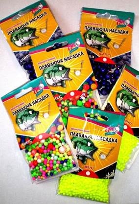 В продаже имеются пенопласт разных размеров, цветов и ароматов. В некоторых случаях лучше ловить на белый пенопласт, в других случаях рыба лучше отзывается на салатовые, красные и желтые шарики. Плотность шариков такая, что их хватает на десяток забросов.