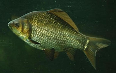 Золотой карась (обыкновенный карась), являющийся объектом промышленного разведения и промысла. Этот вид имеет характерное сплющенное с боков, округлое плоское тело с высоким спинным плавником и хвостом коричневого цвета. Одинарный анальный плавник, а также парные брюшные и грудные имеют слегка красноватую окраску. Чешуя карася на боках крупная, с золотисто-медным оттенком. Брюшина обычно лишена пигментации, в отличие от спины, имеющей коричневатый оттенок.