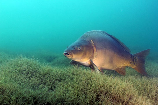 Держится рыба карп, в основном, по кромке подводных зарослей, где питается рачками, микроорганизмами, молодыми побегами камыша. Крупные карпы охотятся на раков, головастиков и лягушат, даже на мальков собственного вида. Молодые карпы, в целях более успешной охоты и противостояния хищникам, сбиваются в стайки, взрослые карпы – одиночки. Однако с началом ледостава рыбы собираются группами для зимовки в ямах.