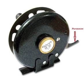 В одном положении рычажка барабан не может вращаться в обратную сторону, а при втором положении может. В первом случае леска фиксируется на определенной длине. В свободное положение рычажок приводится в том случае, если надо стравить леску, когда клюнула крупная рыба.