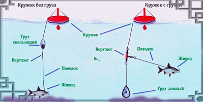 Для ловли ротанов применяются кружки самых малых размеров. Оснастка тоже миниатюрная, если сравнивать с кружками на щуку или судака, не говоря о снастях на сома. Живцы применяются мелкие: плотвички, уклейки, верховки. Можно ставить на двойники резаную рыбку.