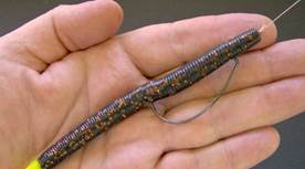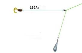 Каролинская оснастка состоит из грузика в виде пули и червя, закрепленного на офсетном крючке. Расстояние между червем и грузилом составляет 10-15 см.