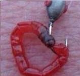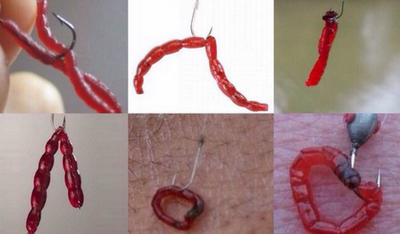 В природе мотыль очень часто встречается в виде колечка. Эта форма не вызывает подозрений у белой рыбы. Поэтому она охотно клюет на такую насадку. Чтобы насадить его таким образом, необходимо проколоть один конец и скрепить его с другим, как показано на рисунке. В таком положении личинка создает шевеления и привлекает рыбу.