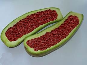 Для хранения мотыля более трех суток его укладывают в кабачок, из которого перед этим вырезают сердцевину. Выглядит это таким образом:
