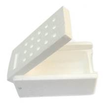 Более крупные сгодятся для хранения червей, а мелкие для опарыша и мотыля. Мотыля лучше хранить в такой пенопластовой мотыльнице. С отверстиями в верху. Она удобно открывается и закрывается. Внутри нее помещают кусочек поролона с водой и кладут мотыля.