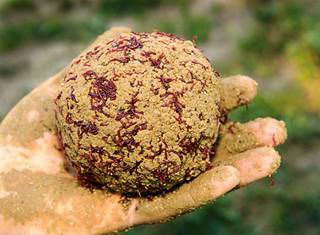 В некоторых случаях в смесь добавляют песок. Он хорошо разрыхляет прикормку. В большей мере это применимо к прикормкам для донной ловли, поскольку песок заметно утяжеляет ее. Следует помнить, что эффект от пылящей прикормки будет зависеть от ее калорийности и «воздушности». Лучше всего на мелководном участке забросить шарик и просмотреть, как частицы будут пылить в воде. Нужно лепить такие шары, которые легко рассыпались бы при падении в воду. Не должно получаться так, чтобы шарик прикормки целым долетал до дна. Он должен полностью раствориться по пути.