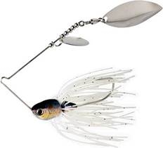 К достоинствам спиннербейта можно отнести то, что она практически не цепляется за водоросли. Такое получается благодаря тому, что жало спрятано внутри бахромы, а во время проводки приманка располагается вертикально, что позволяет легко проходить ей сквозь растущие стебли водорослей.