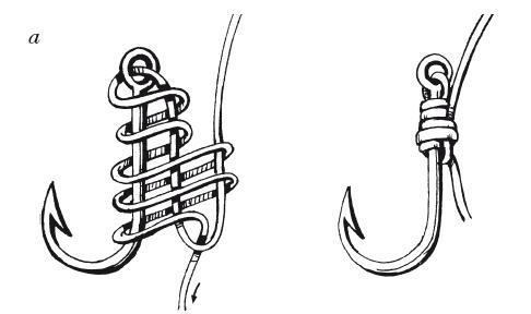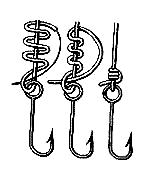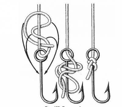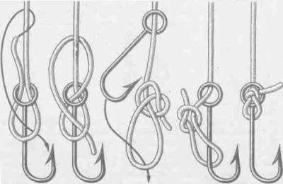 Затем рассмотрим отдельно крепление к той или иной снасти. Итак, среди основных узлов, используемых для привязывания крючков, можно отметить такие виды: