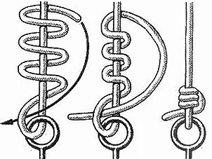 Надёжный, прочных и компактных. Особенность. Перед затяжкой узел закидывают на цевье крючка.