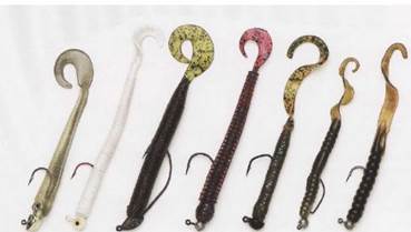 Чаще всего рыболовы используют твистеры и виброхвосты. Твистеры похожи на червяка, только на конце они имеют большой серповидный хвост. Данная приманка имеет ребристую поверхность и хорошо тянется. Размеры современных твистеров составляют от 3 до 15 см. Для щуки, например, идеальный твистер имеет длину приблизительно 10-11 см. К твистеру крепится грузик ушастый.