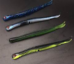 Третье место в иерархии силиконовых приманок для рыбалки занимают черви. Они похожи на длинных выползков. Модификаций силиконовых червей существует великое множество. И пахнут они как правило, не резиной. Натуральные имеют запахи, в общем.