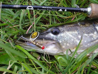 Когда ловим щуку в прибрежной зоне, то используем большие приманки длиной 7-8 см с медленной скоростью вращения. Иногда можно так медленно вести блесну вдоль берега, что она, кажется, вот-вот перестанет вращаться. Именно такая проводка чаще всего и приносит успех при ловле прибрежной щуки-травянки.