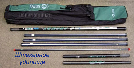 Самый важным аксессуаром в штекерной ловле является удилище. Его длина бывает от 8 до 16 метров. Есть и еще более длинные удилища, до 20 метров. Они используются в основном спортсменами на тренировках и соревнованиях.