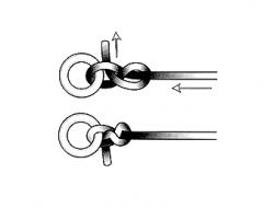 Весьма прочное соединение с высокими показателями на разрыв. Используется для соединения крючка с леской. Особенность. Самозатягивающийся узел с количеством витков более семи.