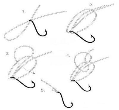 Подходит для крепления крючка к монолеске. Практичный и надёжный узел часто используемый рыбаками - профессионалами.