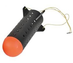 Для быстрой доставки большого количества корма в одну точку удобно использовать специальные ракеты типа Spomb. Это излюбленный инструмент карпятников. В него помещают буквально любую прикорму разной степени вязкости. Это могут быть бойлы, пеллетс, каша, сыпучие прикормки. В ракету заходит от 100 до 300 грамм прикормки. Выглядит она таким образом: